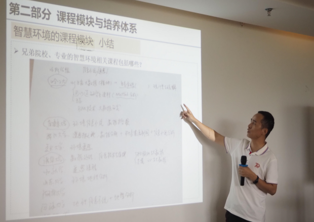 侯慧杰副院长在调研动员报告中特别强调,学院须始终聚焦立德树人根本任务,着力提升本科教学水平,推动智慧环境人才培养的高质量发展。动员报告结束后,参会教职工分5个小组,围绕课程群建设、校企协同育人、智慧环境课程建设、双创实践、专业认同感提升等五个影响我院本科教育教学品质提升的关键性问题开展了热烈讨论。随后,各讨论小组派出教师代表进行了集中总结交流与分享。