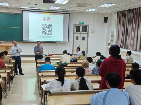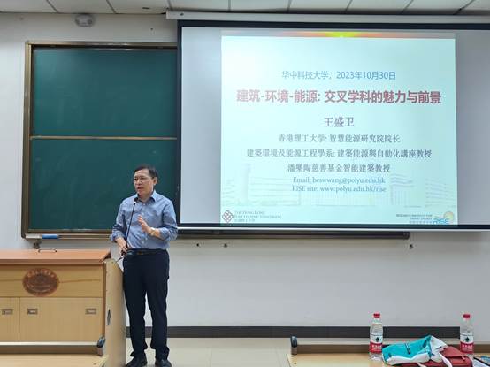 2023年10月30日晚,香港理工大学王盛卫教授在东九楼C502教室为我院一年级全体同学作“生态中国”导论课系列讲座之《建筑-环境-能源:交叉的魅力与前景》。王飞飞副教授参加讲座,徐新华教授主持讲座。