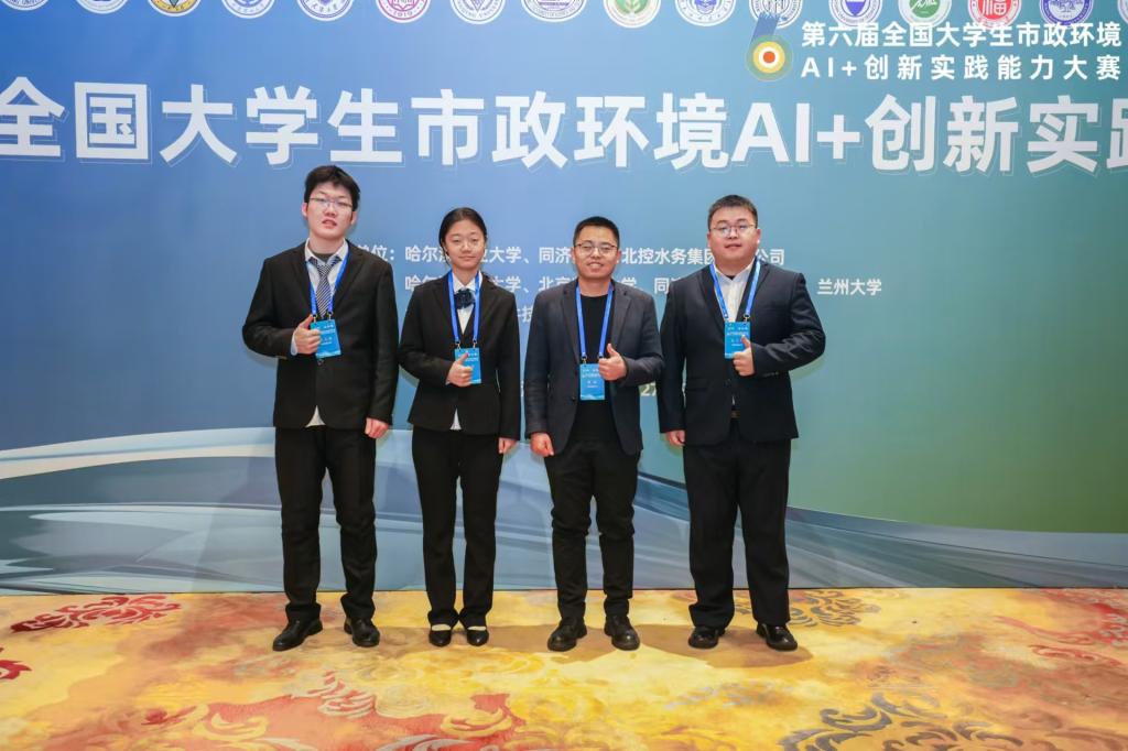 2024年12月27日至29日,由哈尔滨工业大学、同济大学、北控水务集团有限公司联合主办的第六届全国大学生市政环境AI+创新实践能力大赛全国决赛在哈尔滨举行。本届大赛旨在将实践教育与工程教育相结合,推动全国市政环境学科的高质量发展,分为校预选赛、地区选拔赛和总决赛三个环节,来自国内150余所高校,超过3000余名学生参赛,成为我国市政环境学科最大规模赛事之一。环境学院“绿动华科”代表队(队员:王子伟、刘通通、牛晓飞,指导老师:郭刚、任拥政)的“智‘绘’北湖——武汉北湖污水厂的绿色智慧升级”作品荣获全国决赛团体一等奖。