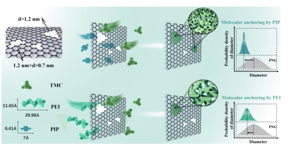 分子工程修饰的大面积单层多孔石墨烯膜用于离子分离示意图