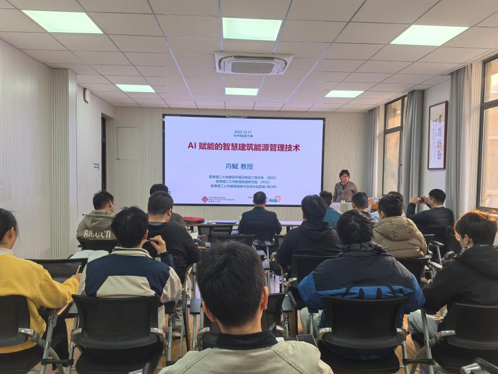 2025年12月17日上午,香港理工大学建设与环境学院副院长肖赋教授做客“环境大讲坛”,作题为《AI赋能的智慧建筑能源管理技术》的学术讲座。肖赋教授是香港理工大学建设及环境学院副院长,同时也是英国屋宇设备工程师学会注册工程师,香港工程师学会注册工程师和美国暖通空调工程师学会会员,国际杂志 Building Simulation 副主编,主要研究方向为智能建筑和智慧能源管理。