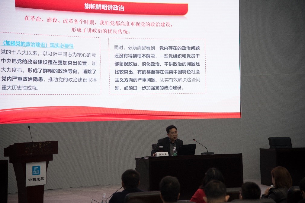 活动开始前,全体参会人员面对党旗重温了入党誓词,随后建环系系党支部书记管延文讲授了题为“深入学习贯彻《中共中央关于加强党的政治建设的意见》”的党课。管老师以《意见》出台的背景及其特点为切入点,重点分析了如何加强党的政治建设的总体要求,提出旗帜鲜明讲政治是要懂大局、知轻重、明是非。针对组织实施的四个要点:落实领导责任、抓住关键少数、强化制度保障、加强监督问责进行了概述总结。