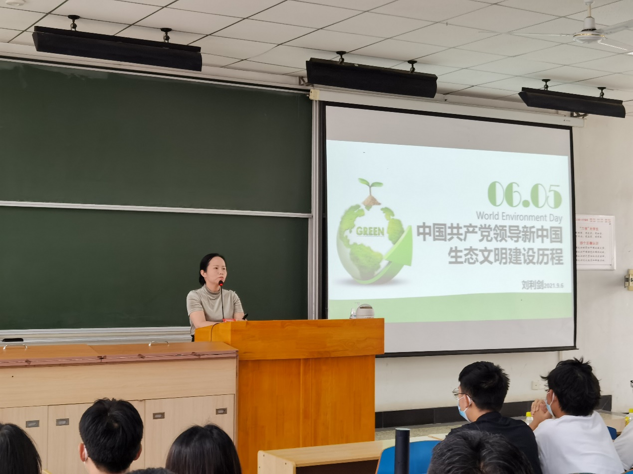 为庆祝中国共产党成立一百周年,进一步贯彻落实习近平总书记关于生态文明建设系列重要思想,加强新生的党史学习教育,引导新生积极向党组织靠拢,9月7日下午,环境科学与工程学院在东十二楼F202教室举办了“早日站在党旗下”专题教育讲座。院党委书记刘利剑老师以“中国共产党领导新中国生态文明建设历程”为主题,给全院264名2021级本硕博新生上了一堂生动的思政课。讲座由环境学院学工组长杨丹妮主持。
