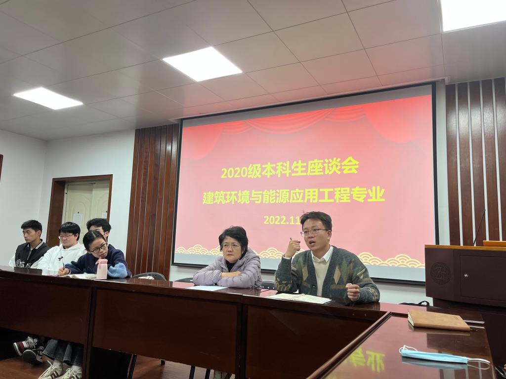 20221117日晚上,建环系教师党支部与建环2020级本科生进行面对面交流,针对课程学习、就业选择、学风建设等问题展开交流。除部分同学有公选课外,建环2020级本科生均到了现场,建环系大部分教师、辅导员杨凯老师、两个班的教师班主任参加了本次交流会。
