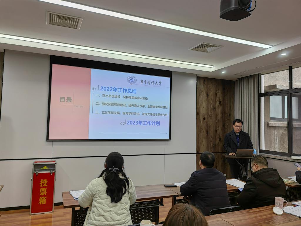院党委书记刘利剑首先肯定了各支部过去一年的工作,指出在新的一年学院党委要全面学习贯彻党的二十大精神,持续推进党建与学院发展深度融合,各基层党支部要坚定信心、攻坚克难,挖掘党支部特色,激发党支部活力,以实干笃定前行,奋进新征程。