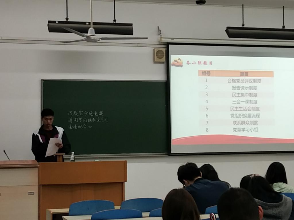 20171019日晚,在东十二303教室,环境学院开展了预备党员党校学习交流活动。全院学生党支部书记及预备党员到场参会。
