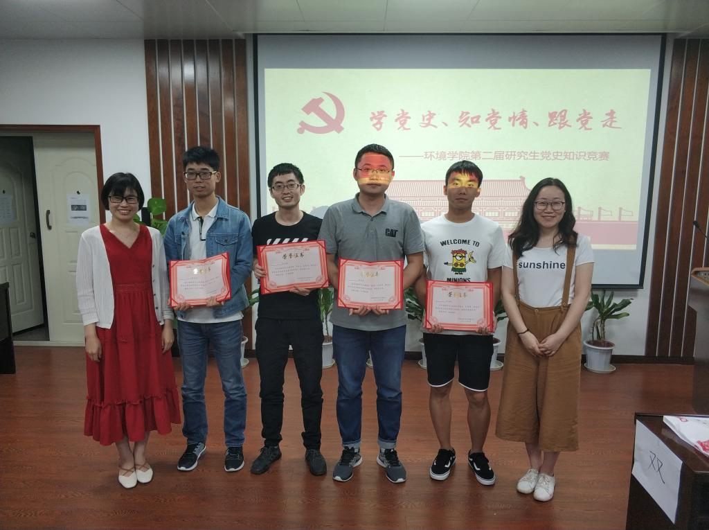 经过激烈角逐,最终“硕士环工16级党支部”、“硕士暖通17级党支部”、“硕士16级暖通、生态、环科党支部”、“硕士环工17级党支部”分别荣获一、二、三名及最佳团体奖。杨丹妮老师、刘菊老师对获奖队伍进行颁奖。届时,环境学院党史知识竞赛圆满结束。