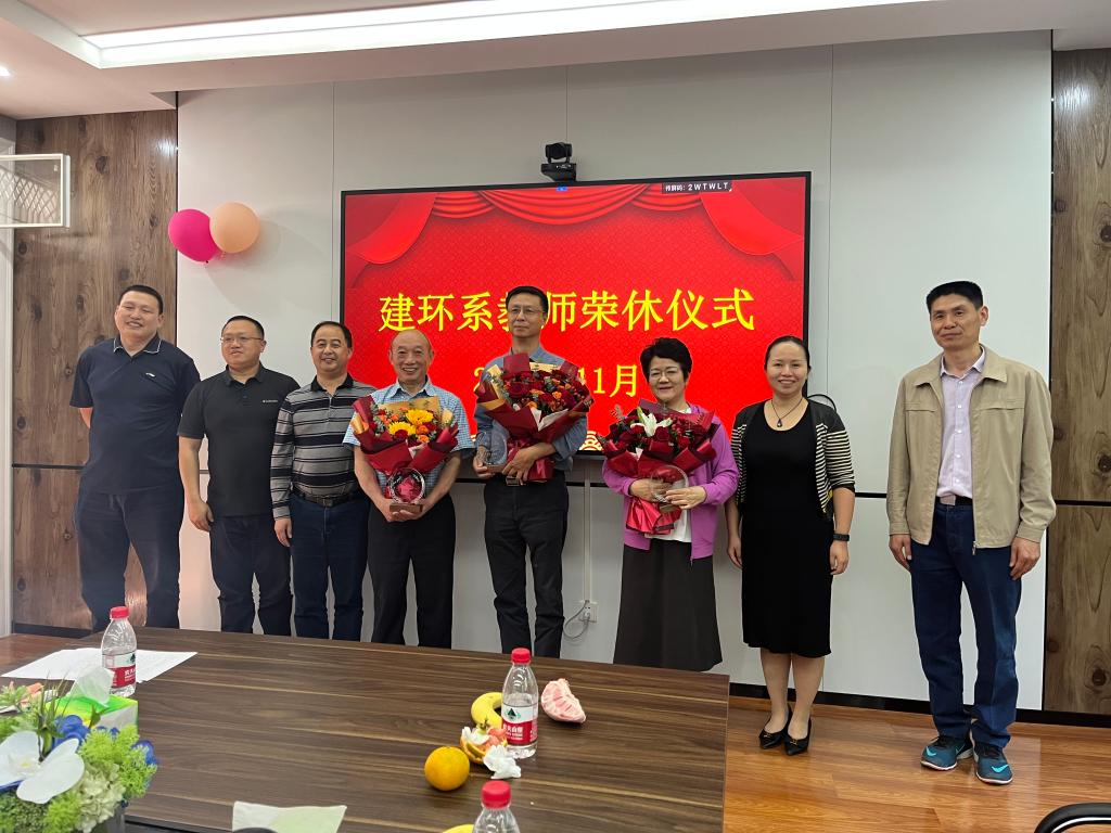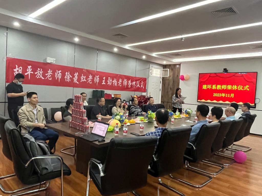 2023年11月2日,建环系教师党支部在欣苑317为胡平放老师、徐菱虹老师、王劲柏老师三位教师举办荣休仪式。环境学院党委书记刘利剑同志、副院长吴晓晖教授、副院长徐新华教授、启明学院副院长王琳玲教授、工会主席王松林教授、办公室主任吕朝敏老师、退休教师刘文斌老师和沈国民老师、建环系教师党支部全体教师、学生代表等参加了本次荣休仪式。