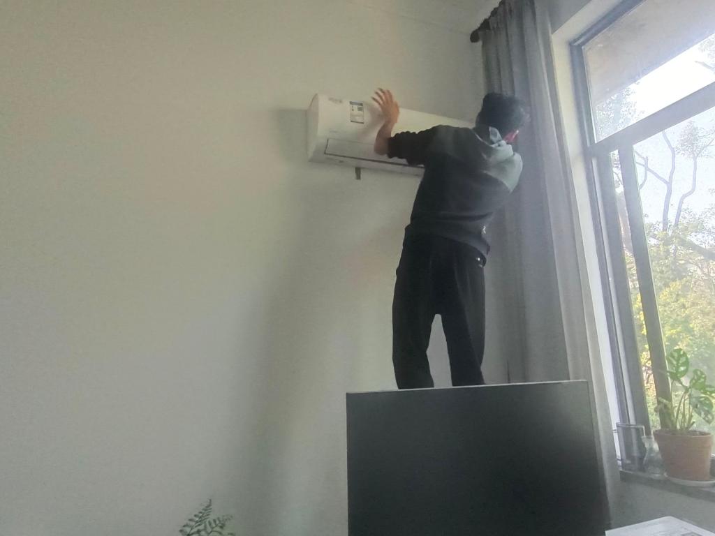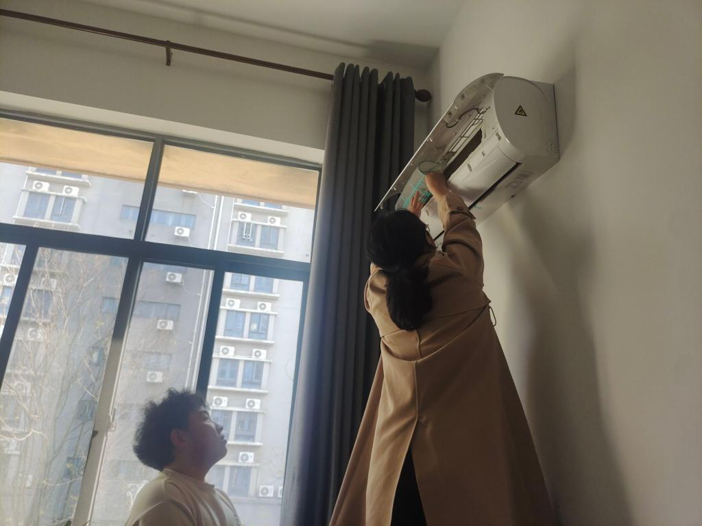 在韵苑18栋志愿者们对120121122社区公用房的空调滤网的积灰进行了清洗,并归置整齐物品。