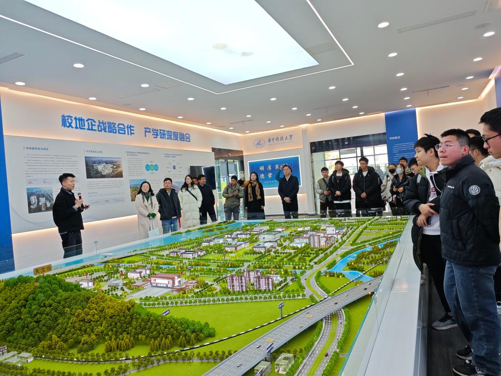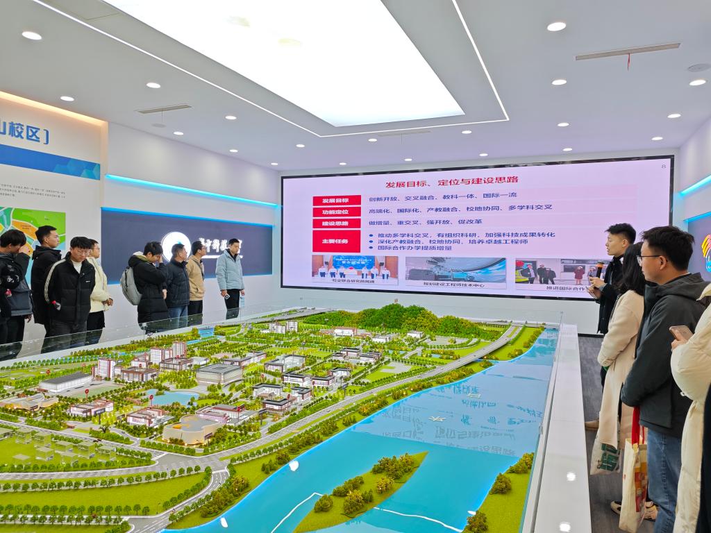 在军山校区城市展厅,蔡煦老师借助沙盘模型详细介绍了军山校区的筹建历程、建设规划、基础设施建设、周边配套及发展方向等情况。环境学院师生一行得以了解到军山校区的建设历程、整体规划与未来发展蓝图。