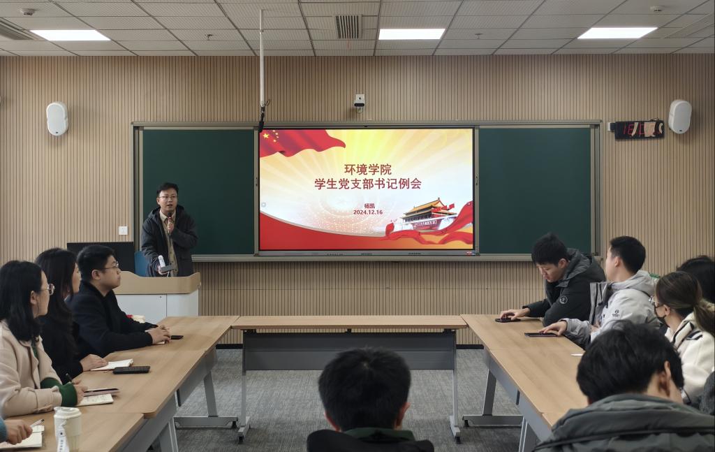 在公共教学科研中心(西楼)315智慧教室,环境学院召开十二月党支部书记例会,党建辅导员杨凯主持。会上,党委副书记周雅琦以“领悟全会精神,谱写生态篇章”为主题,从国家战略高度到学院发展实际,从宏观政策解读到具体工作部署,深入浅出地阐述了在新时代背景下,学院如何以党建为引领,将全会精神融入到人才培养、学科建设、科研创新以及社会服务等各项工作中,为师生上了一堂生动且深刻的党课。