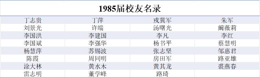 1985届本科生校友名录
