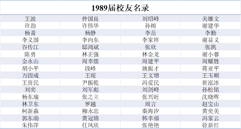 1989届本科生校友名录