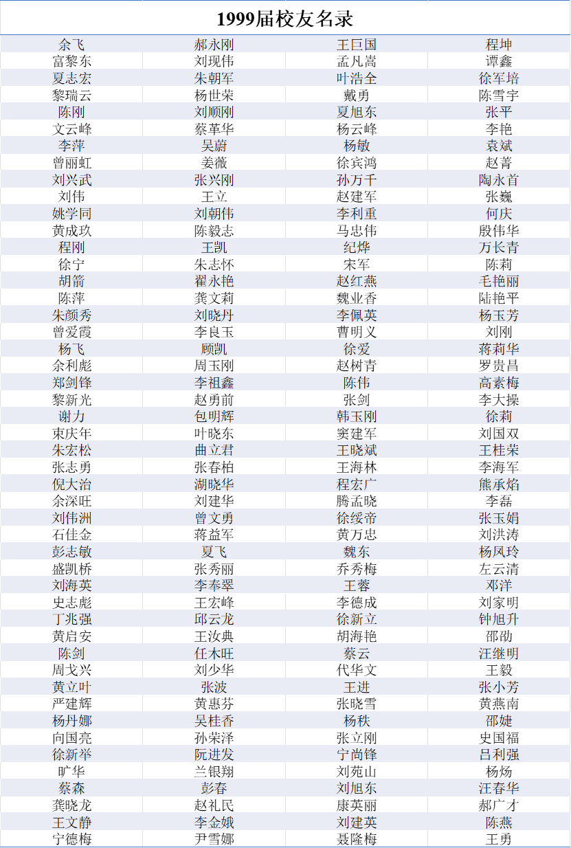 1999届本科生校友名录