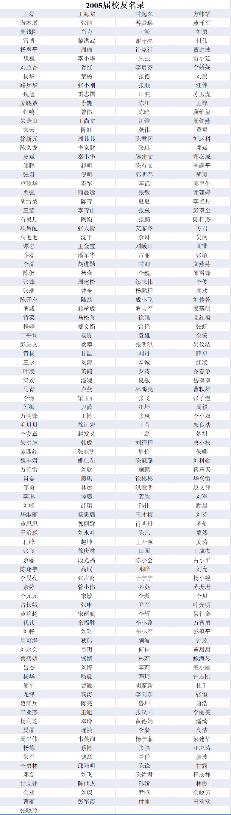 2005届本科生校友名录