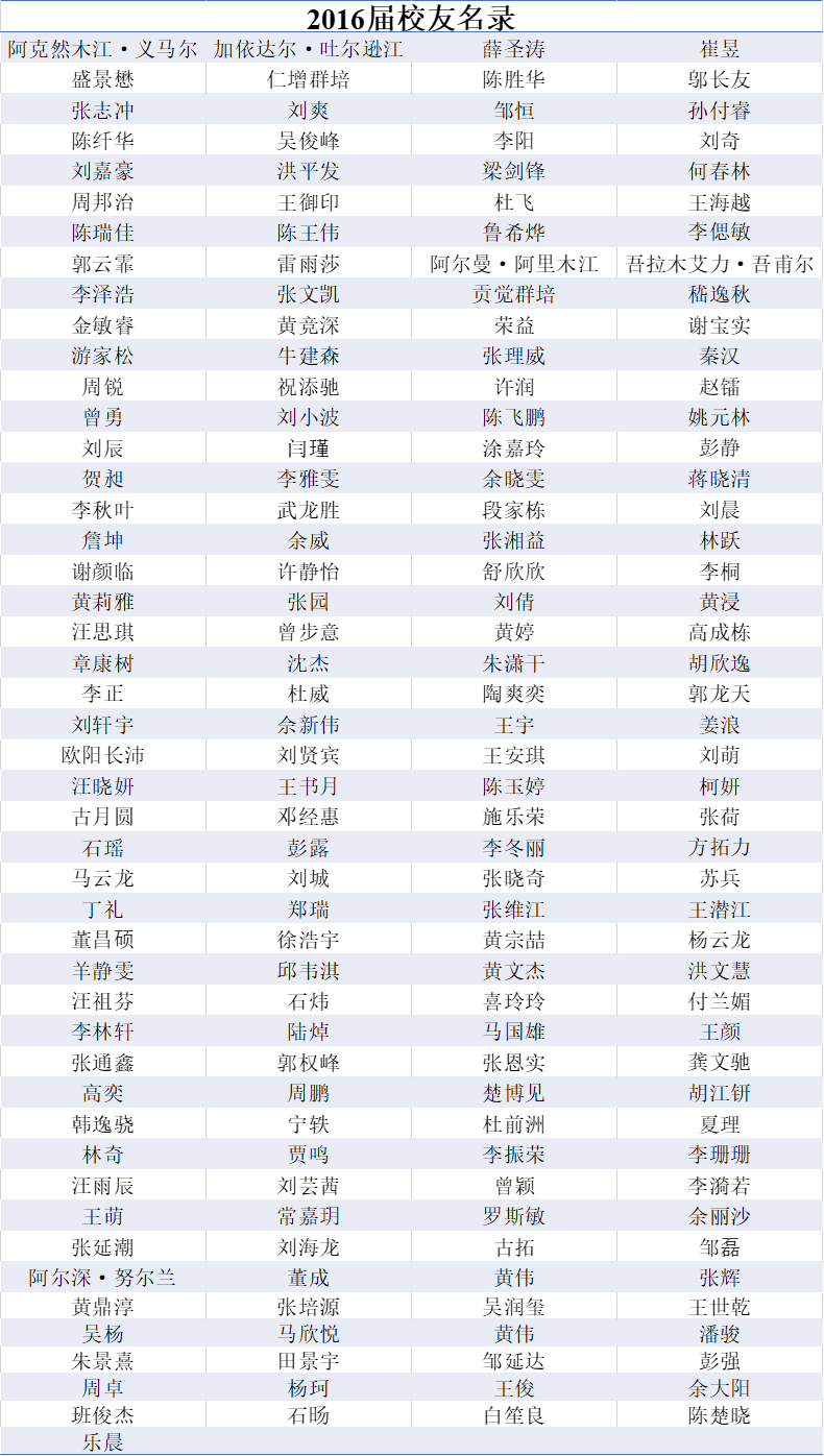 2016届本科生校友名录