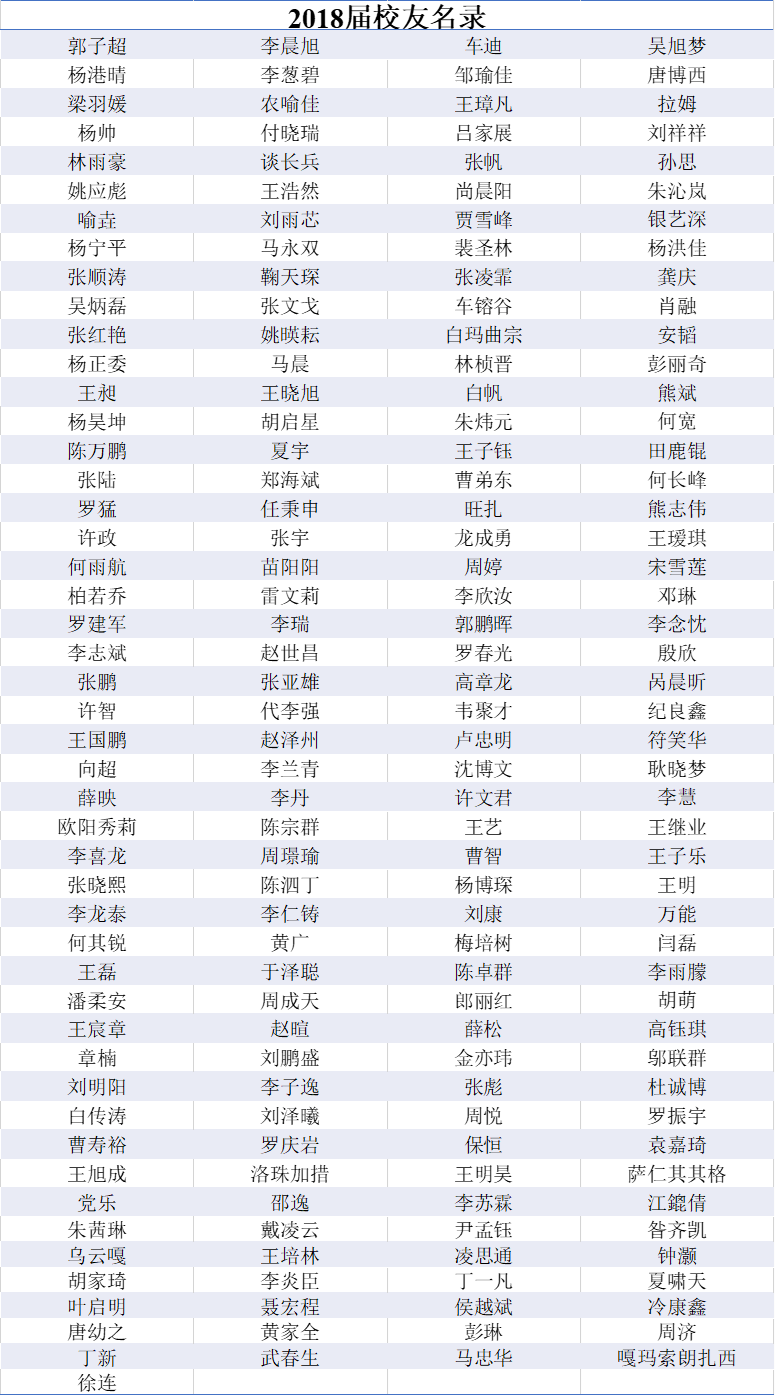 2018届本科生校友名录