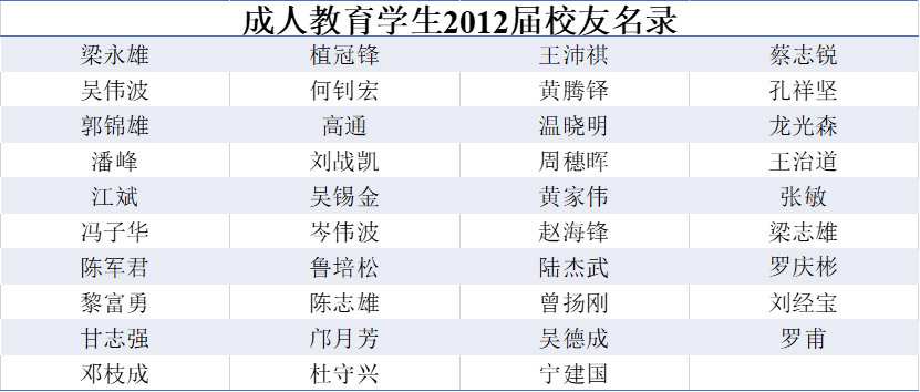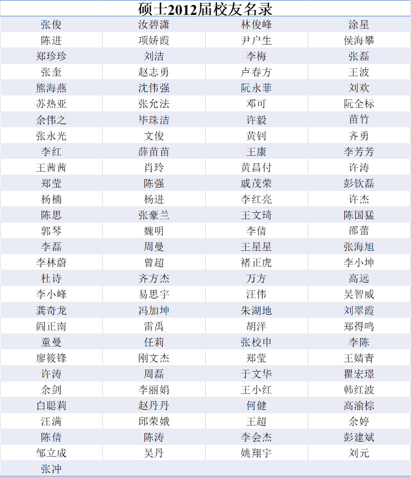 2012届研究生校友名录