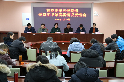 校党委第五巡察组巡察图书馆党委情况反馈会现场