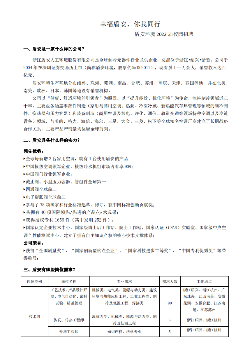 盾安环境2022届校园招聘