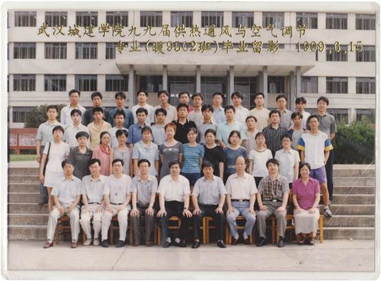 武汉城建学院1999届供热通风与空气调节专业暖9501班毕业留念